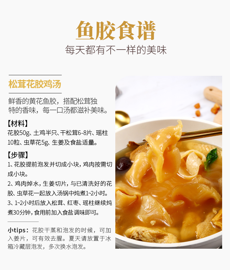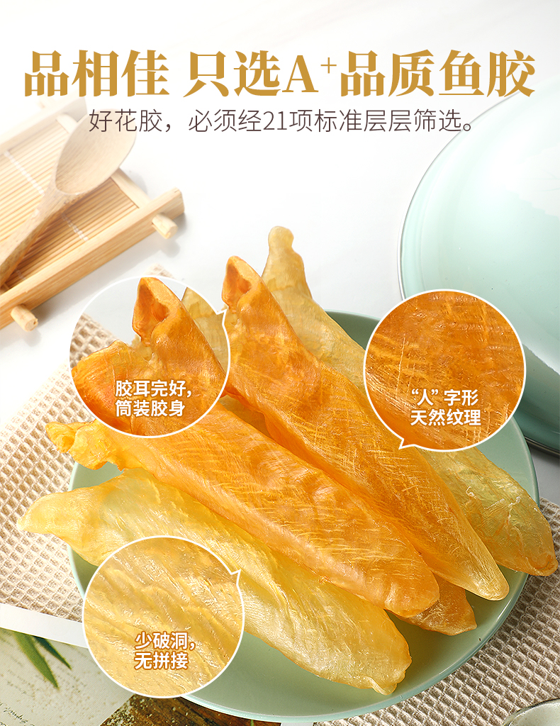 花膠即魚肚,是各類魚鰾的干制品,以富有膠質(zhì)而著名,故名為花膠。花膠又名魚肚,是從魚腹中取出魚鰾,切開曬干后而成。花膠含有豐富的蛋白質(zhì)、膠質(zhì)等,食療有滋陰養(yǎng)顏、固腎培精之效,可令人迅速消除疲勞。頂級(jí)魚肚排名依次是魚膠之王:金錢鳘魚膠、白花膠、黃鱘膠、黃花膠、鳘魚膠。花膠不僅是筵席名菜,還有相當(dāng)?shù)淖萄a(bǔ)價(jià)值。